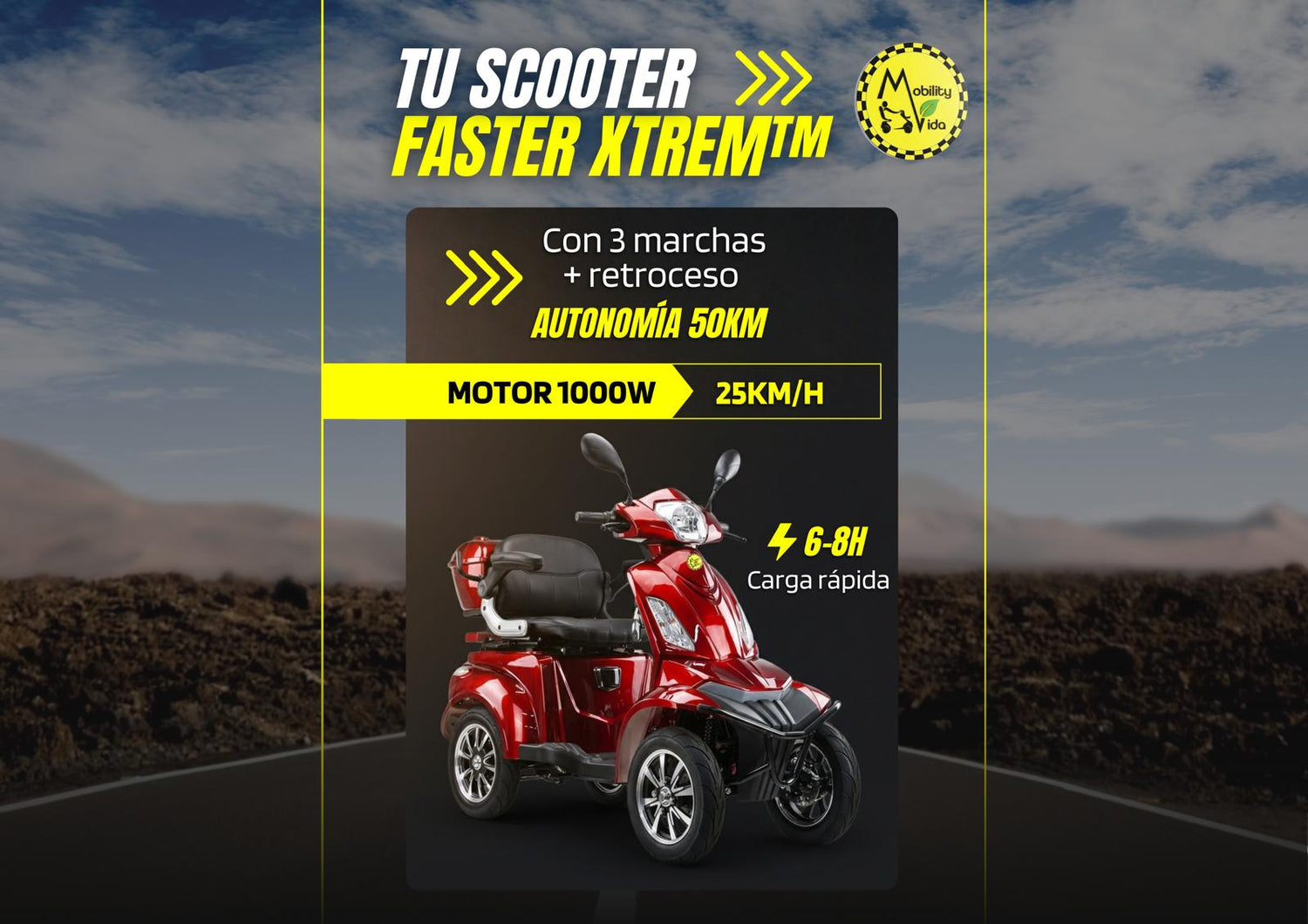 Descubre el Faster Xtrem, un scooter eléctrico diseñado para quienes buscan máximo rendimiento sin renunciar a la seguridad y el confort. Con una velocidad de hasta 25 km/h, este modelo ofrece una conducción estable, potente y suave en cualquier trayecto.