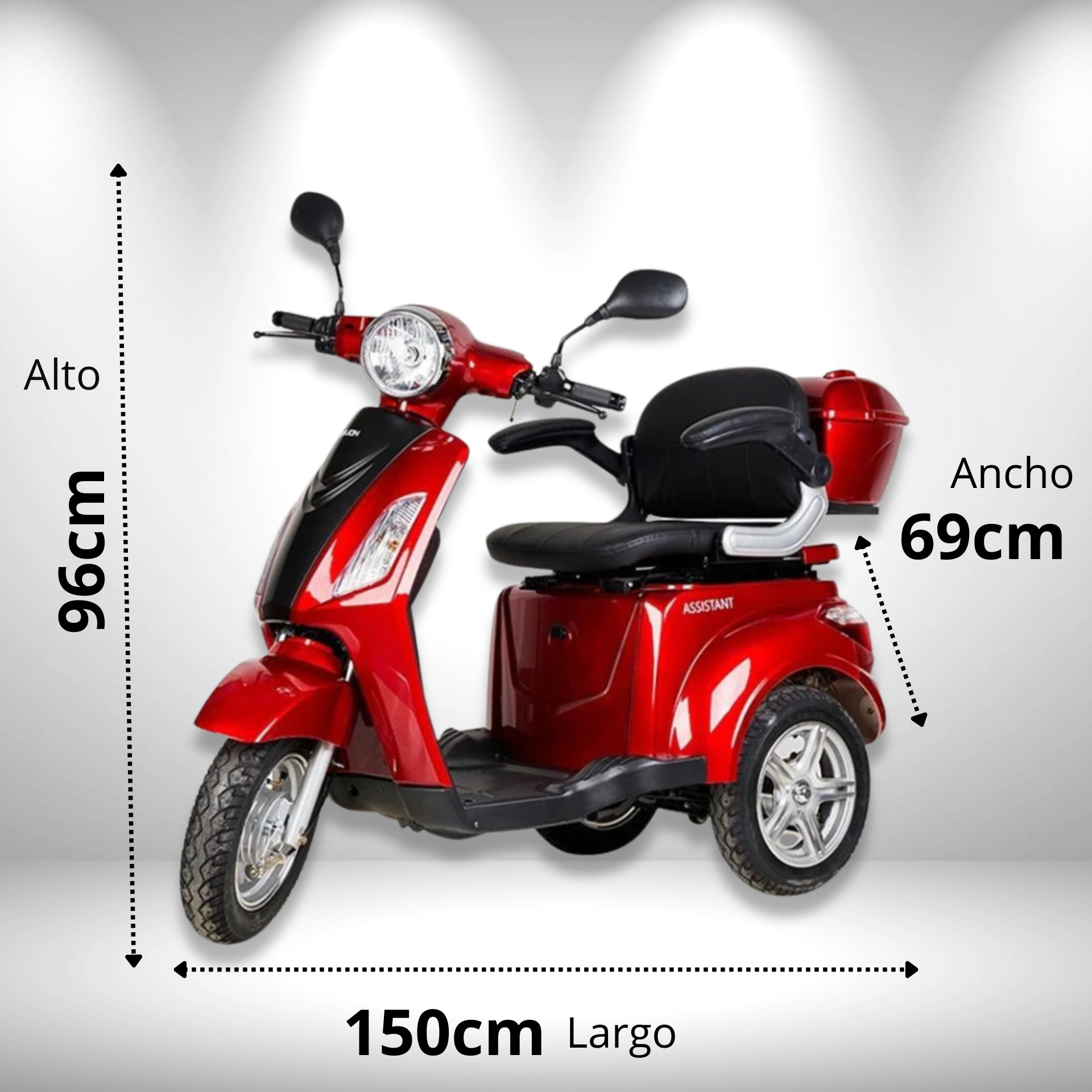 - Asiento de máximo confort y 3 ruedas.